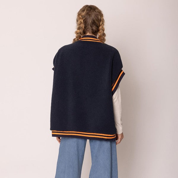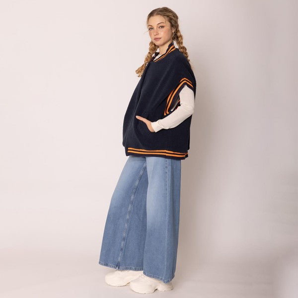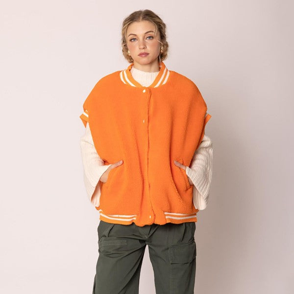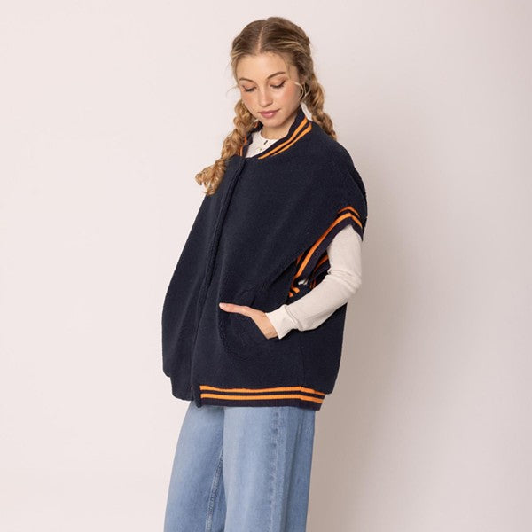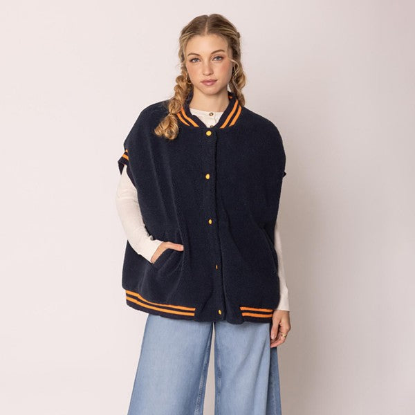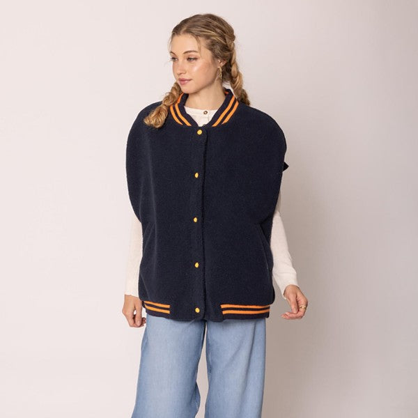 Do Everything In Love Sherpa Varsity Vest With Button Up Closure & Pockets